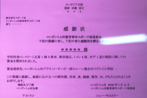 自分に出来ることは限られていますが、「一つでも二つでも学校を建てるお手伝いができれば」と思い、寒行の托鉢を行い布教をしてまいりました。そして、10年間でようやく2校目が完成。18日に訪れる予定のコンポントム州スヴォイ小学校は、どんな様子だろう。徐々に高まる期待で興奮し、その夜私はなかなか寝つく事ができませんでした。